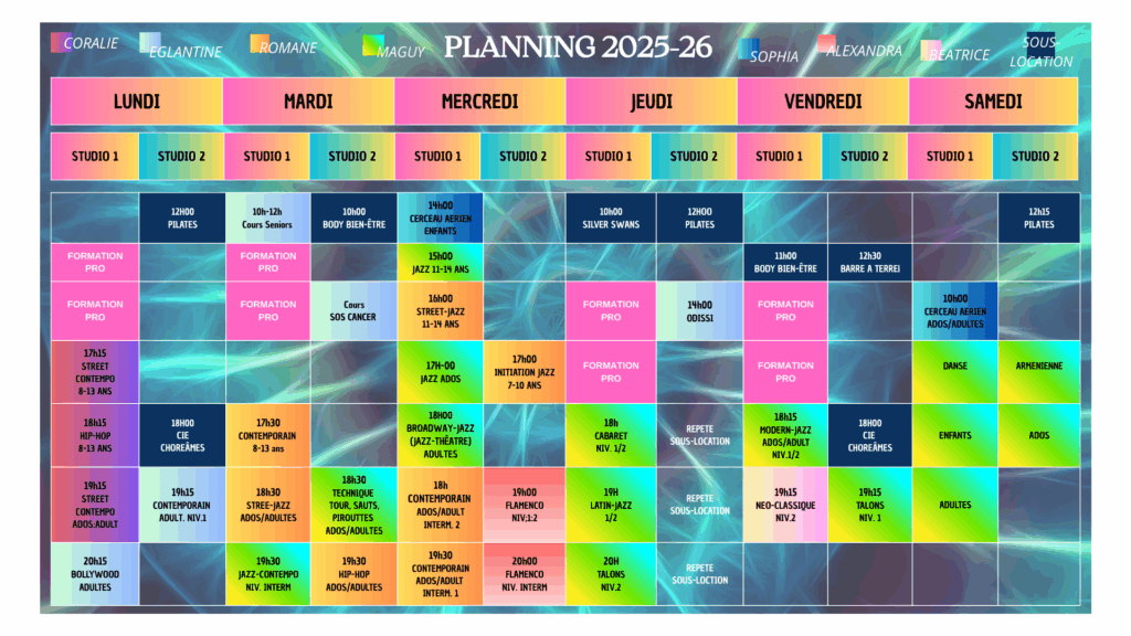 (Sous réserve de modification si nécessaire) Tarifs sur demande par e-mail meltingdanse@hotmail.fr
